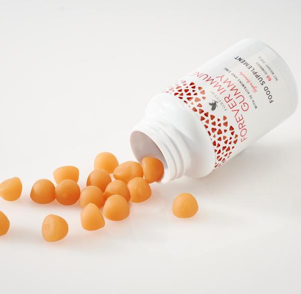 Σιρόπι γλυκόζης, ζάχαρη, τροποποιημένο άμυλο, σύνθεση βιταμινών και ανόργανων στοιχείων [βιταμίνη C (ασκορβικό οξύ), ψευδάργυρος (γλυκονικός ψευδάργυρος), βιταμίνη E (οξική dl-α-τοκοφερόλη), νιασίνη (νικοτιναμίδιο), βιταμίνη A (οξική ρετινόλη), βιοτίνη(d-βιοτίνη), βιταμίνη B12 (κυανοκοβαλαμίνη), βιταμίνη D3 (χοληκαλσιφερόλη), βιταμίνη B6 (υδροχλωρική πυριδοξίνη), βιταμίνη K (φυλλοκινόνη), φυλλικό οξύ (πτεροϋλομονογλουταμικό οξύ)], ρυθμιστής οξύτητας (κιτρικό οξύ, κιτρικό τρινάτριο), φυσικό βελτιωτικό γεύσης μάνγκο, coating material (κηρός καρναούβης), τρόφιμο με φυσικές χρωστικές [συμπύκνωμα ηλιάνθου (Carthamus tinctorius), συμπύκνωμα καρότου (Daucus carota), συμπύκνωμα μήλου (Malus domestica)].